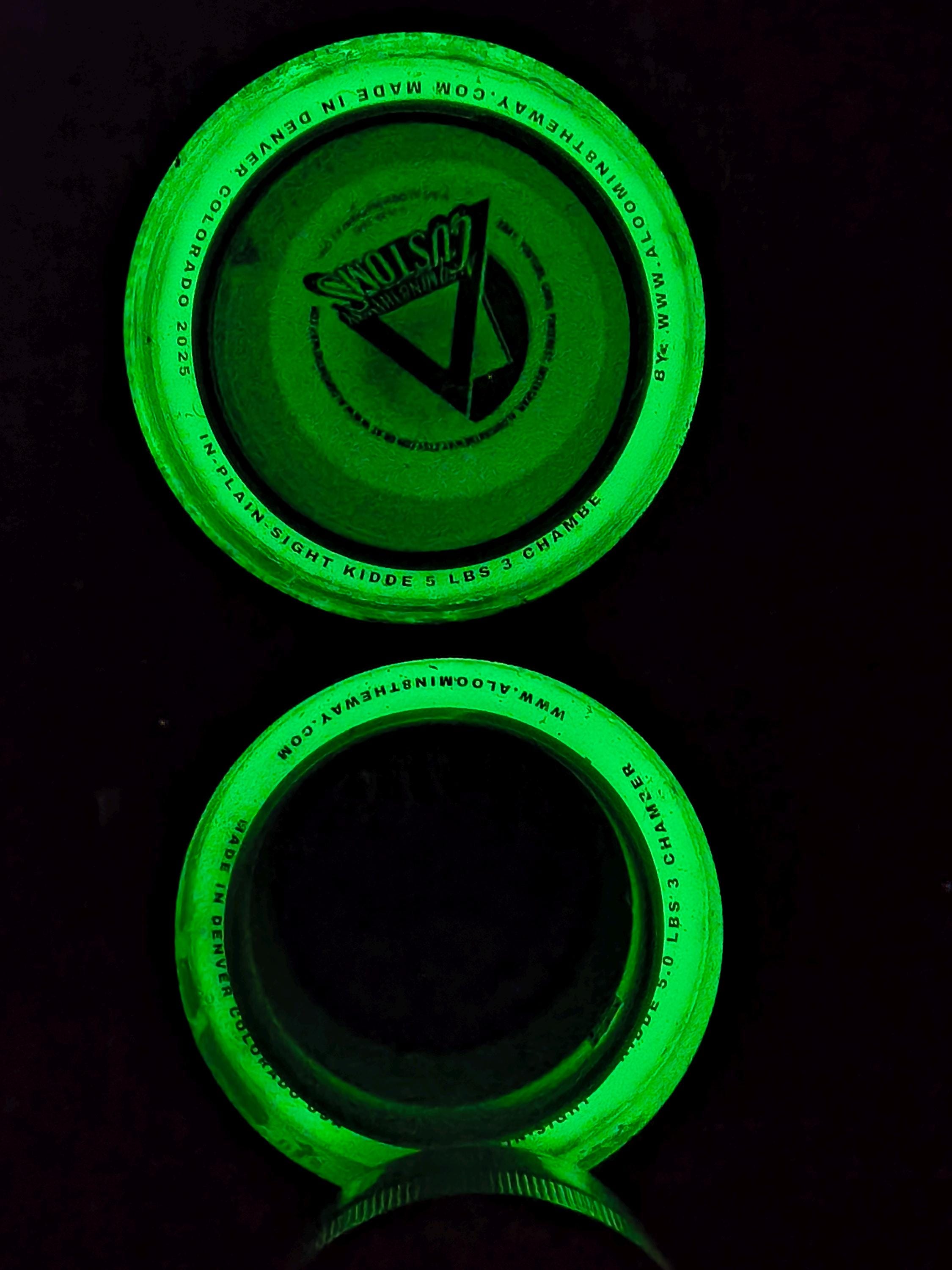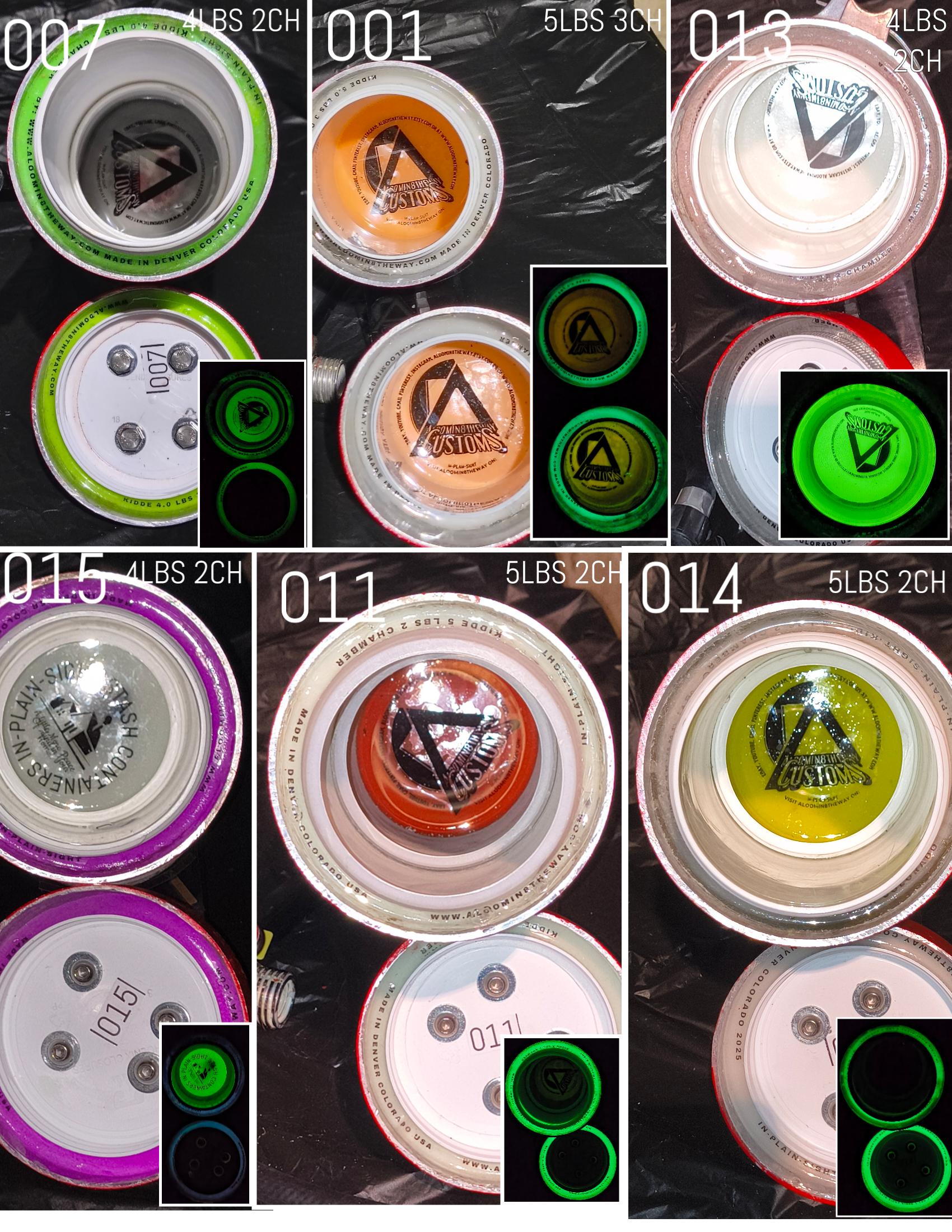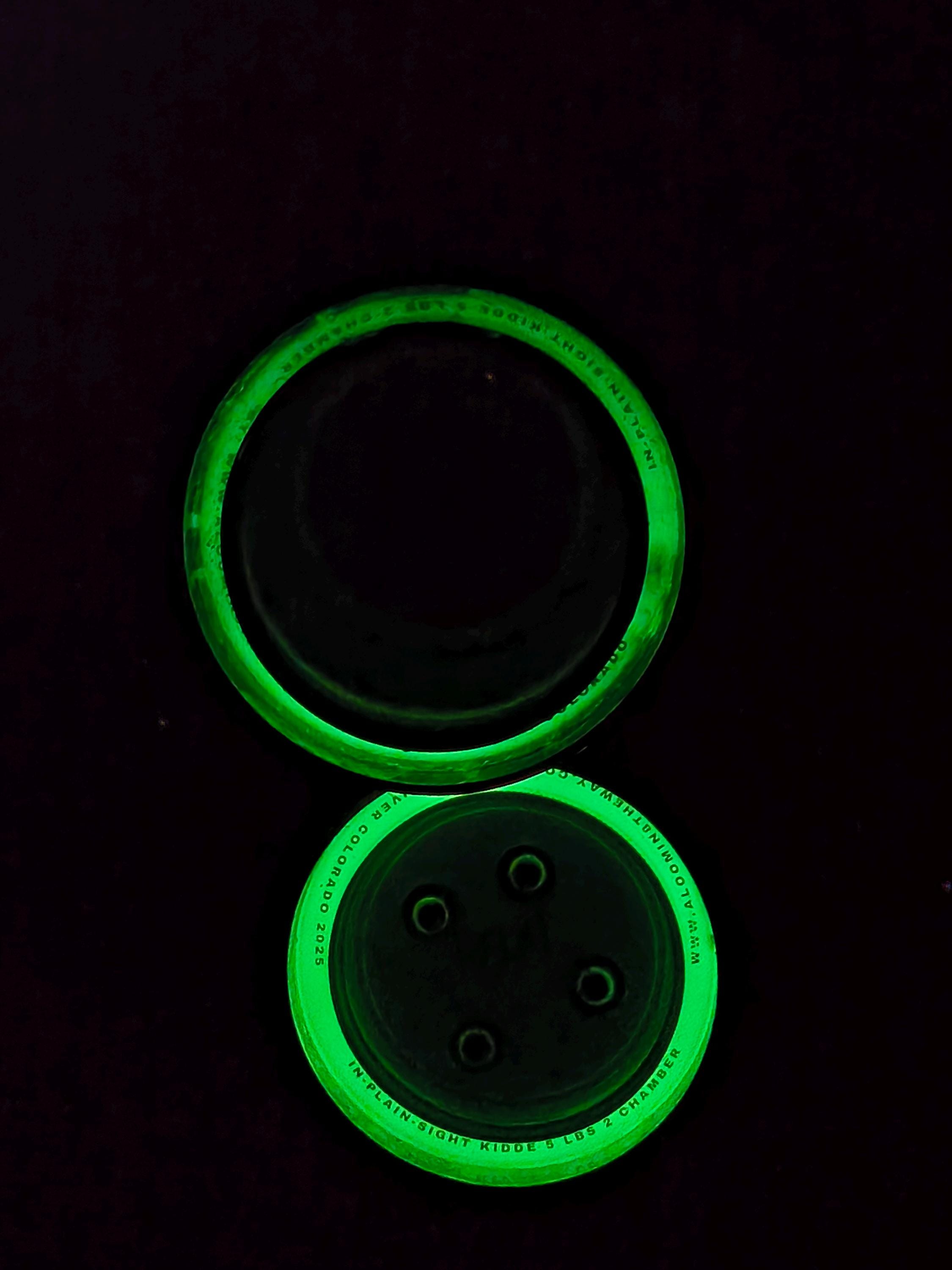 available in today's most popular Glow-In-The-Dark (GITD) colors like natural White, orange, green, purple, red. Available In 2 or 3 Smell Proof Chambers.